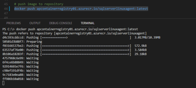 docker push apcontainerregistry01.azurecr.io/sqlserverlinuxagent:latest