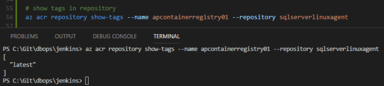 az acr repository show-tags --name apcontainerregistry01 --repository sqlserverlinuxagent