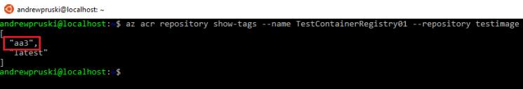 az acr repository show-tags --name TestContainerRegistry01 --repository testimage<a