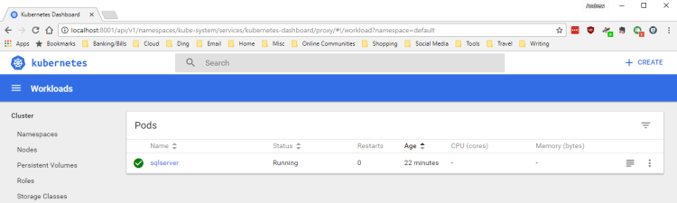 That IP can then be dropped into SSMS (along with the SA username and password set) and boom! A connection to SQL Server running in a Kubernetes pod that was created via a deployment from the dashboard: –