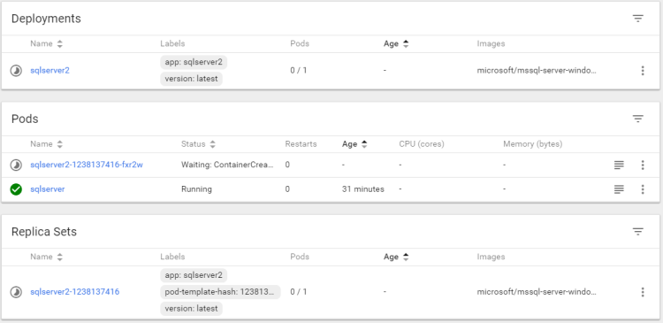 In my last post I created a single pod running SQL Server, I want to move on from that as you’d generally never just deploy one pod. Instead you would create what’s called a deployment.