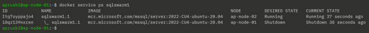 My service is running on AP-NODE-01…that’s the manager node for the cluster so we probably don’t want our service running there. Let’s move it to another node.
