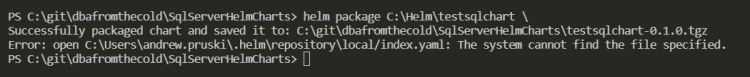 And now package the SQL Server Helm chart and copy it to the cloned, empty repo:-