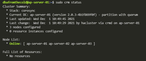 sudo scp /etc/corosync/authkey dbafromthecold@ap-server-03:~