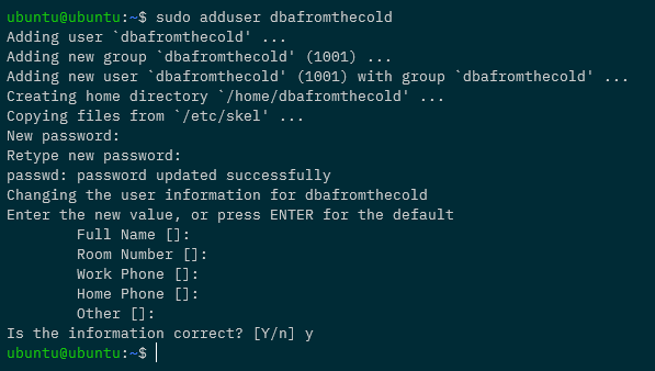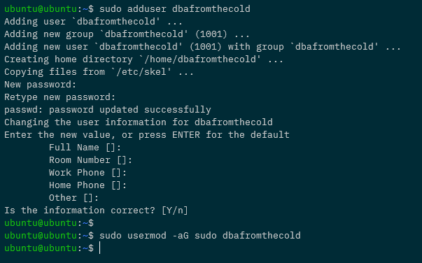 sudo adduser dbafromthecold