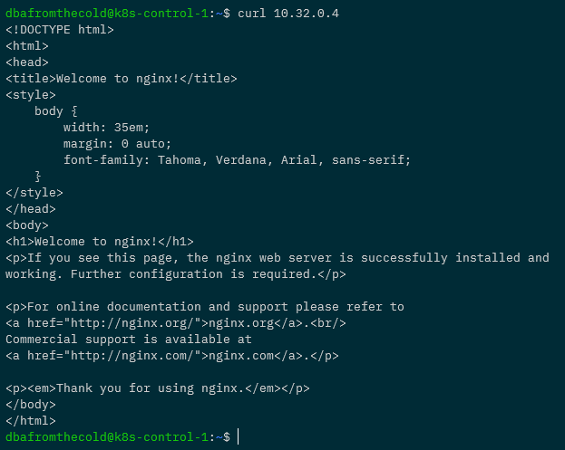 Awesome! Ok, to really confirm everything is working…try to curl against that IP address from outside of the cluster (from our local machine): –
