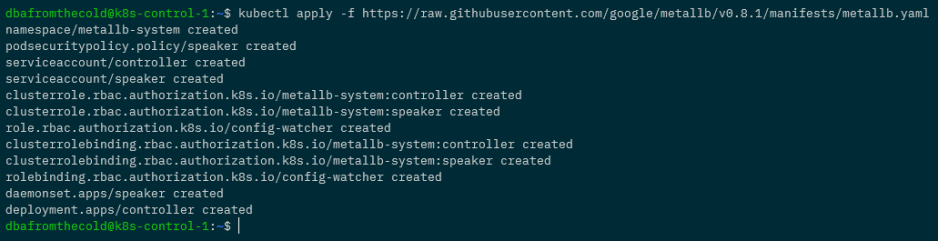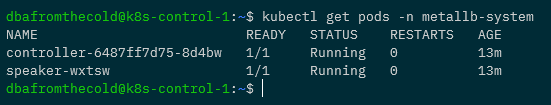 OK, to make sure everything is working…check the pods in the metallb-system namespace: –