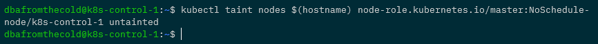 And now we can add the taint back to the control node: –