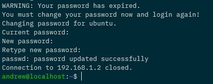 When we first try to ssh we’ll have to change the ubuntu user password: –