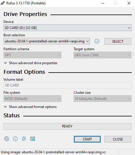 The first thing to do is flash the SD cards. I used Rufus but Etcher would work as well.
