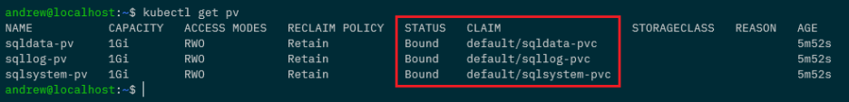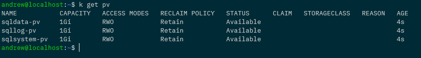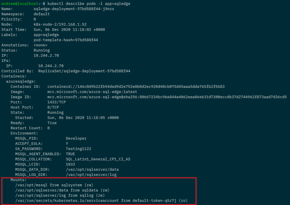Alrighty, we’ve done a lot of config to get to this point but now we can deploy Azure SQL Edge. Here’s the yaml file to deploy: –