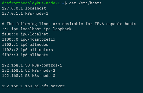 Pick one Pi that’s going to be the control node and let’s ssh into it: –