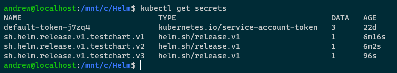 So by storing this information as secrets in the target Kubernetes cluster, Helm can rollback an upgrade even if the old replicaset has been deleted! Pretty cool!