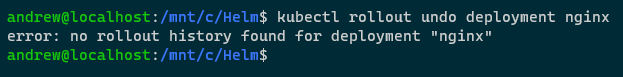 The reason that failed is that we deleted the old replicaset, so there’s no history for that deployment, which we can see with: –