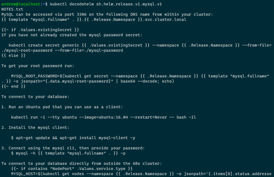 By using Helm we can rollback a release even if the old replicaset of the deployment has been deleted as Helm stores the history of a release in secrets in the target Kubernetes cluster. And by using the code above, we can decrypt those secrets and have a look at the information they contain.