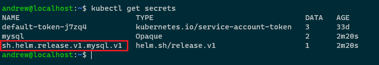 The old replicaset is back! How? Let’s have a look at secrets within the cluster: –