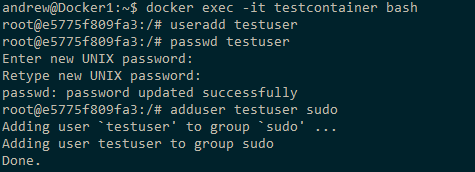 The user has been created and added to the super user’s group within the container. But if we come out of the container and run: –