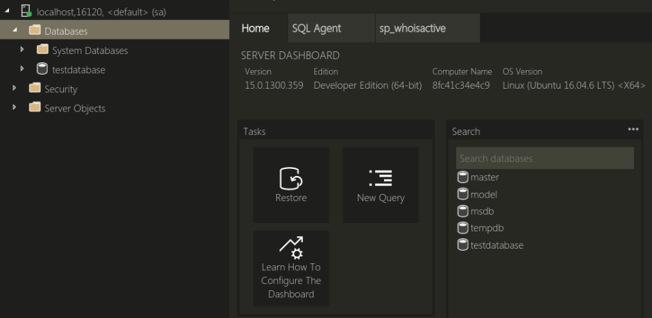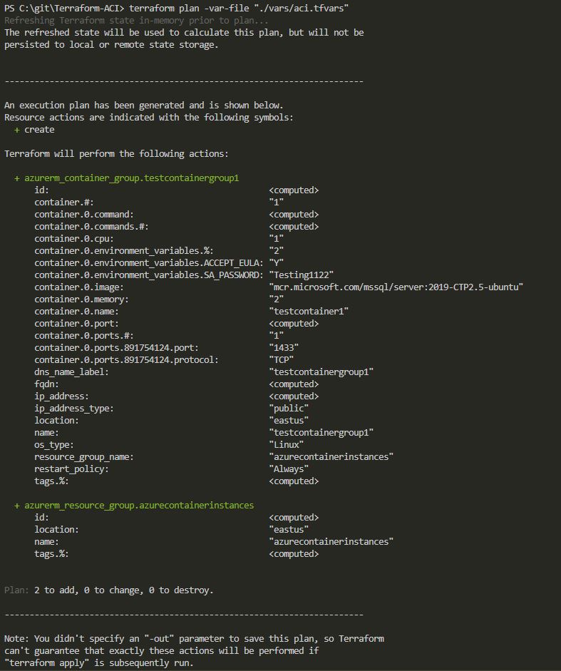 docker run -d -p 15789:1433 ` --env ACCEPT_EULA=Y --env SA_PASSWORD=Testing1122 ` --name testcontainer ` mcr.microsoft.com/mssql/server:2019-CTP3.0-ubuntu