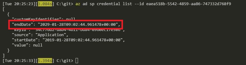 I confirmed that the service principal had been updated: –