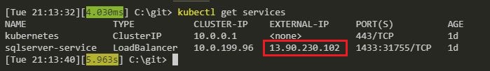 kubectl describe service sqlserver-service