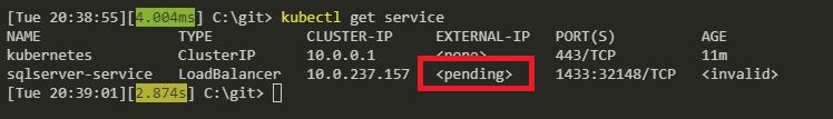 Last week I was working on my Azure Kubernetes Service cluster when I ran into a rather odd issue. I’d created a service with a type of LoadBalancer in order to get an external IP to connect to SQL Server running in a pod from my local machine.