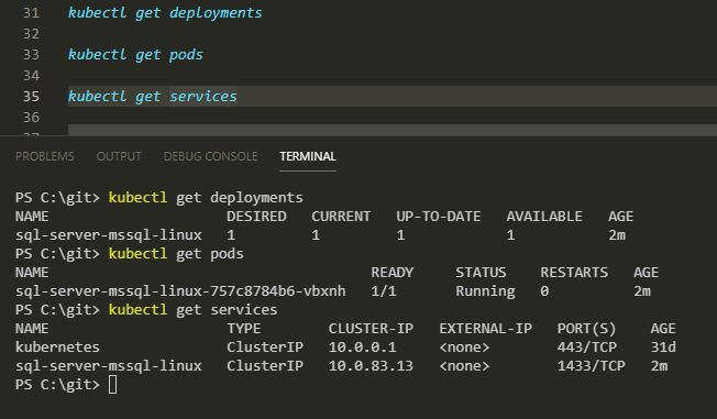 kubectl describe service sqlserver-service