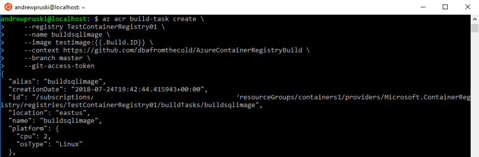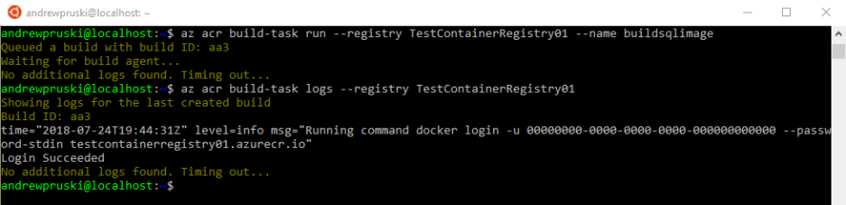 az acr build-task run --registry TestContainerRegistry01 --name buildsqlimage