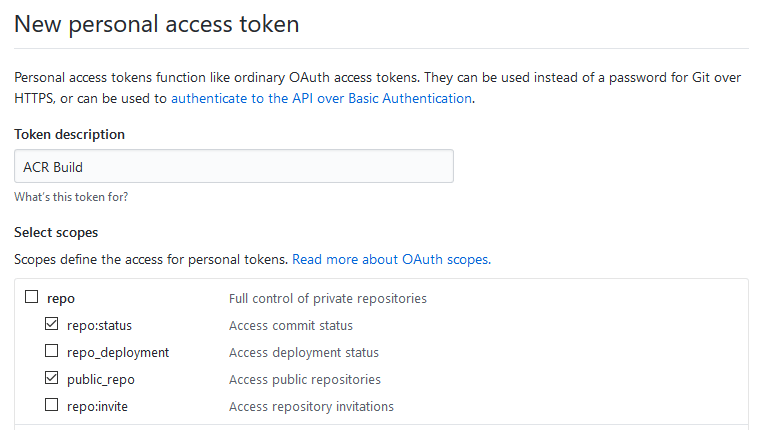One of the cool things about ACR build is that we can hook it into GitHub so when we commit to a repository it will build us a new image (very, very cool π ). Let’s run through how to set that up now…