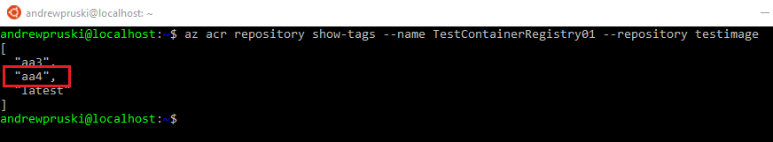 az acr repository show-tags --name TestContainerRegistry01 --repository testimage<a