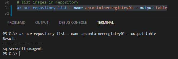az acr repository show-tags --name apcontainerregistry01 --repository sqlserverlinuxagent