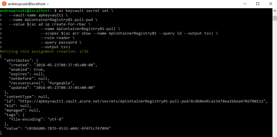 az acr create --resource-group apcontainers1 --name ApContainerRegistry01 --sku Basic