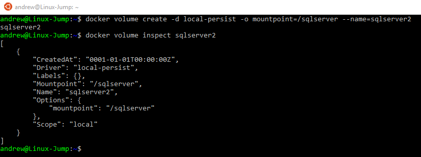 docker volume create -d local-persist -o mountpoint=/sqlserver --name=sqlserver2