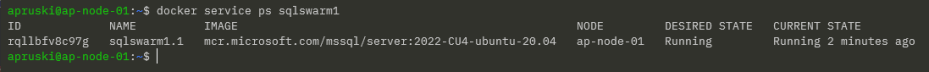 Cool! So we can see which node in the cluster our SQL container is running on.