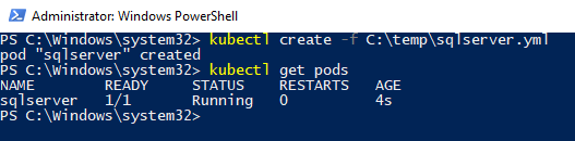 kubectl create -f C:\temp\sqlserver.yml
