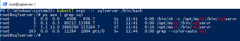 kubectl exec -it sqlserver /bin/bash