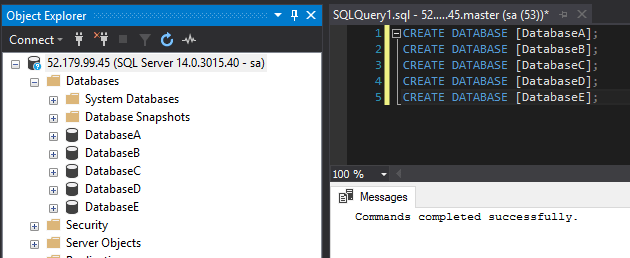 And the databases are there! The original instance within the pod has been deleted but a new pod running SQL Server and the persistent volume was automatically created!