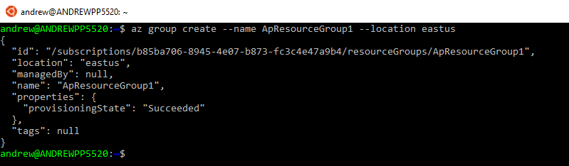 I created the resource group in eastus because as much as I tried, I kept getting errors when using other locations (e.g. – ukwest)