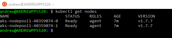 az aks create --resource-group ApResourceGroup1 --name mySQLK8sCluster --node-count 2 --generate-ssh-keys