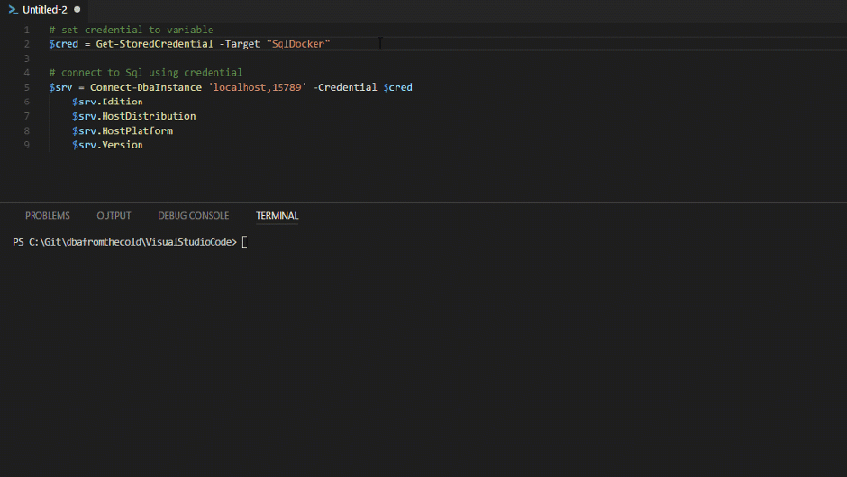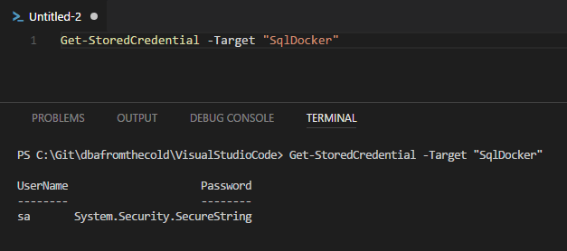 $cred = Get-StoredCredential -Target "SqlDocker"