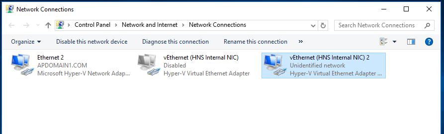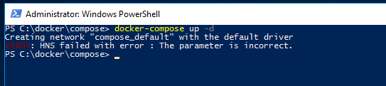 The way I got around this was to disable the existing vEthernet (HNS Internal NIC) adapter in my network connections. Running compose seems to create a new virtual NIC, so you will end up with: –