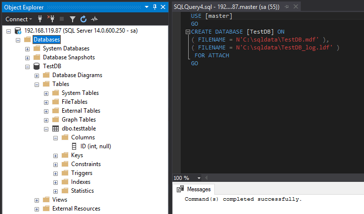 (NAME = N'TestDB_log', FILENAME = N'C:\SQLServer\TestDB_log.ldf')