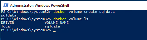 docker create -v C:\SQLServer --name Datastore microsoft/windowsservercore