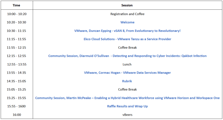 UPDATE – Full agenda and registration are now available here. We have a bunch of great speakers to relaunch VMUG Ireland!