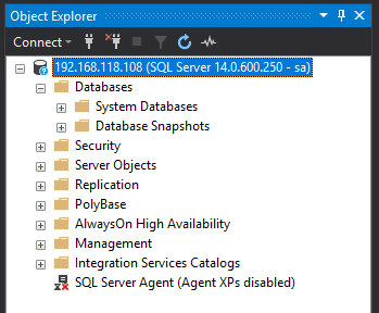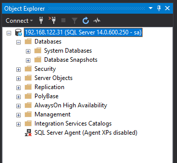 Same as before, grab the private IP and connect into SQL Server: –