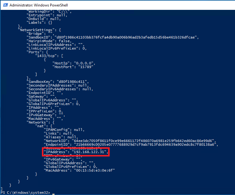 docker run -d -p 15799:1433 -v D:\SQLServer:C:\SQLServer --env ACCEPT_EULA=Y --env sa_password=Testing11@@ --name testcontainer2 microsoft/mssql-server-windows