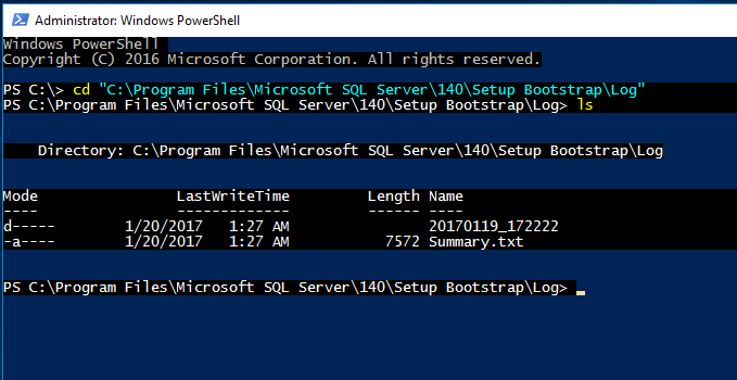 cd "C:\Program Files\Microsoft SQL Server\140\Setup Bootstrap\Log\"