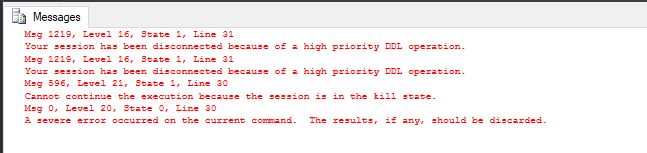 The session that running the rebuild should now have stopped with the rather disconcerting error: –