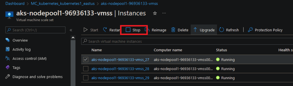 A while back I wrote a post on Adjusting Pod Eviction Timings in Kubernetes. To test the changes made in that post I had to shut down nodes in an Azure Kubernetes Service cluster.